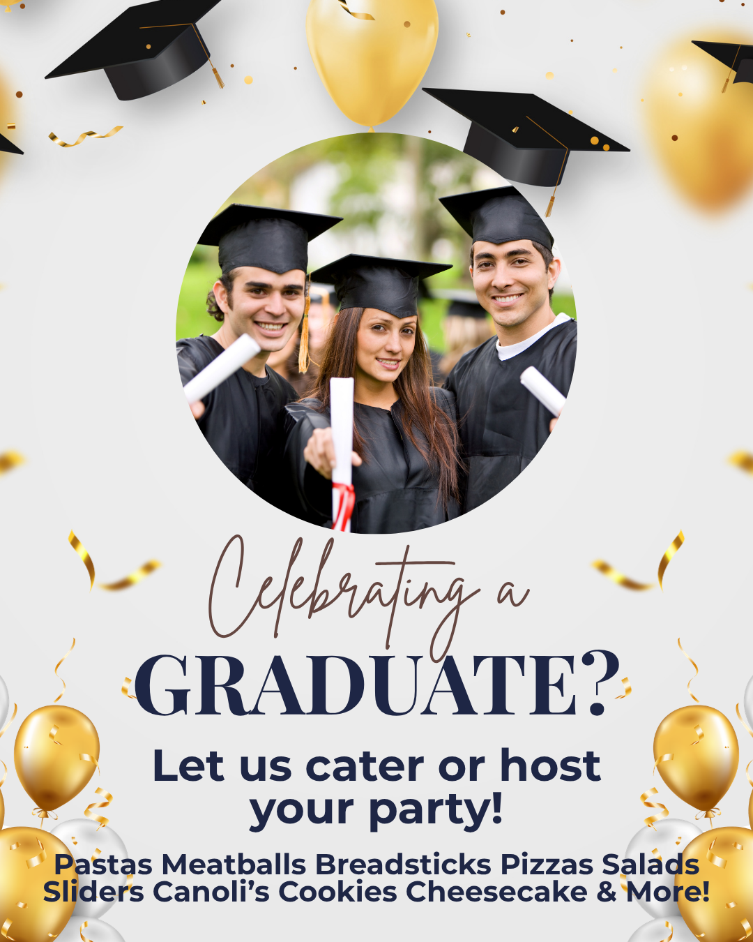 Let us cater or host your party, so YOU can enjoy the celebration as well!