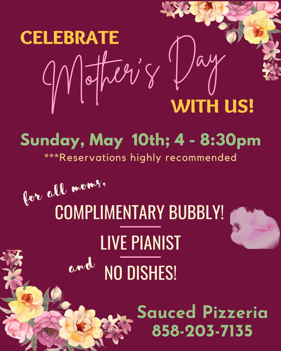 Treat your mom like the superstar she is! Join us for a delicious meal, fabulous ambiance and top-tier service (heck, we'll make YOU look like the superstar)!